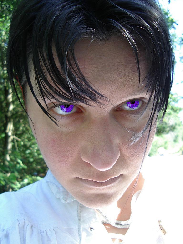 Dichte schwarze Haare fallen in die Stirn des hageren Gesichts mit den, der hohen Wangenknochen wegen, elfisch anmutenden Zügen. Seine Nase ist schon seit jeher ein wenig schief und unter dem linken Auge erkennt man eine Narbe die von einem Schlag herrühren mag. So Du es schaffst seinen schüchternen Blick zu fangen siehst Du in die violetten Augen, die nicht selten eine tiefe Sehnsucht widerspiegeln. Ganz im Gegensatz zu dem freundlichen und bisweilen kindlichen Lächeln welches oft seine schmalen Lippen ziert. Bis auf das spitz zulaufende linke Ohr erinnert seine schlaksige Gestalt jedoch weitgehend an einen Menschen. Nur sein Alter ist schwer zu schätzen. Meist wird man ihn seines Verhaltens wegen für viel jünger halten, als er dem Aussehen nach sein kann.