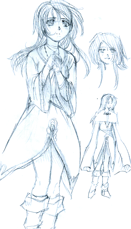 Menu ist ein recht junges, weibliches und menschliches Wesen. Sie scheint ungefähr 18 - 19 Götterläufe hinter sich zu haben, ist also recht jung. Ihre Größe liegt im Bereich von 160 Halbfingerlängen, könnte aber auch kleiner sein. Sie ist recht dünn, was aber eher davon zu kommt, dass sie eine Zeitlang einfach wenig aß, aus welchem Grunde auch immer. Sie bewegt sich immer recht vorsichtig und immer so unauffällig wie möglich, was aber nicht selten eher auffällt, da sie ziemlich tollpatschig ist, und so alles wieder augleicht. Sie ist im allgemeinen recht zierlich, was aber auch leicht den Eindruck der Zerbrechlichkeit erwecken kann. Ihre Stimme ist hell und sie setzt sie beim Sprechen möglichst geschickt ein, wobei sie oftmals Trauer oder Unsicherheit darstellt. Wenn man ein Ohr dafür hat, kann man auch festellen, dass sie vielleicht gut singen mag. Für menschliche Verhältnisse zumindest. Ihr Haar ist stufig geschnitten, geht ihr an der kürzesten Stelle bis zur Wange und an der längsten bis zu den Schulterblättern. Es ist von einem satten, dunklen Braun und ist recht dünn und seidig. Dieses fällt ihr an vielen Stellen in ihr kindlich geschnittenes Gesicht und beeinträchtigt oft ihre Sicht, weswegen man sie oft debei beobachten kann, wie es sich zurückstreicht. Ihre Augen sind von einem blassen blaugrün und das einzig wirklich Schöne an ihr. Sie blicken zwar meist traurig, aber wenn sie einmal lacht sieht es dafür umso wärmer aus. Sie trägt meist eine schwarze, einst enganliegende Hose, und Oberteil. Darüber eine eigenartig geschnittene Tunika in einem blau- violettem Pastellton. Um die Taille hat sie einen Gürtel geschnürt, an dem sich einige Beutel befinden. Meist hat sie auch noch eine lederne Tragetasche bei sich. Über dem ganzen trägt sie einen braunroten Umhang, der schon einmal genäht wurde, wenn man genau hinschaut. Um ihren Hals trägt sie eine hübsch anzusehende Kette, dessen Anhänger eine Eidechse darstellt und dessen Augen Topasse sind. Mit sich trägt sie einen Stab, der wie ein Einhorn geschnitzt ist, ihr über den Kopf ragt und oben mit Lederbändchen an welchem Glöckchen hängen verziehrt ist.